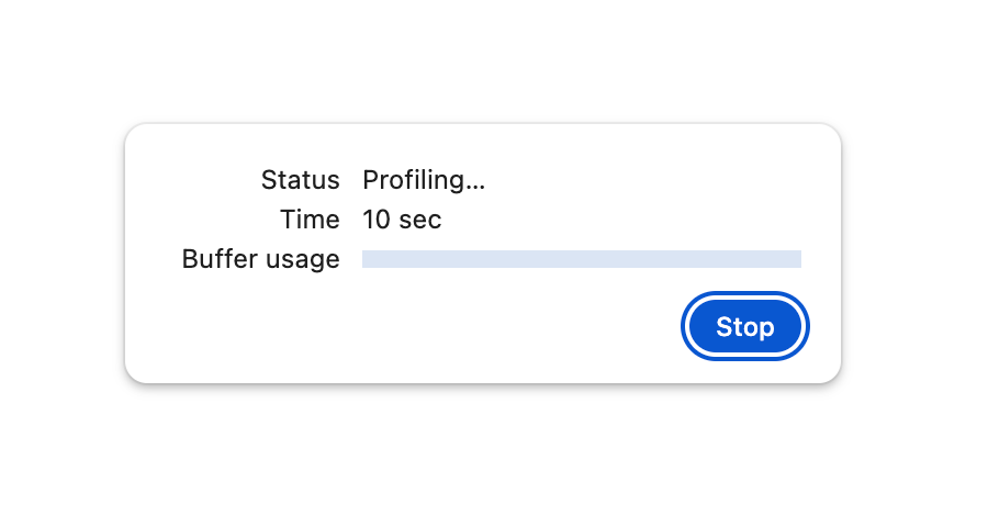 After that, youll see the dialog indicating profiling status. You can stop it at any time by clicking the Stop button.